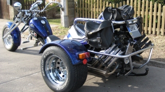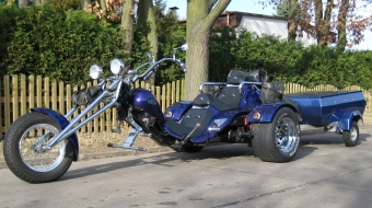 4in6 Dragster-Auspuffanlage, Digitaltacho, Leder- Packtaschen und Anhängerkupplung.